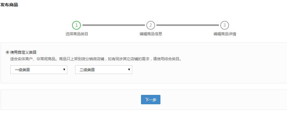 选择自定义类目(规格需要自己添加的),点击下一步