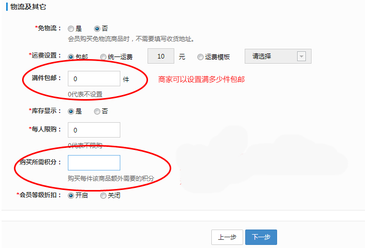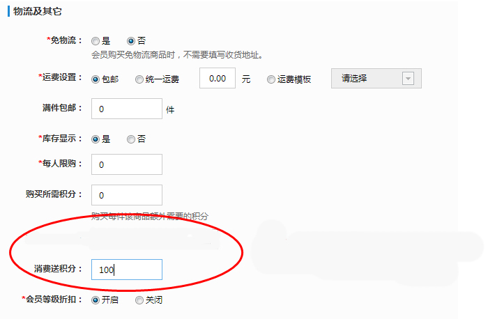 发布和编辑商品时,可以设置“消费赠送积分”。