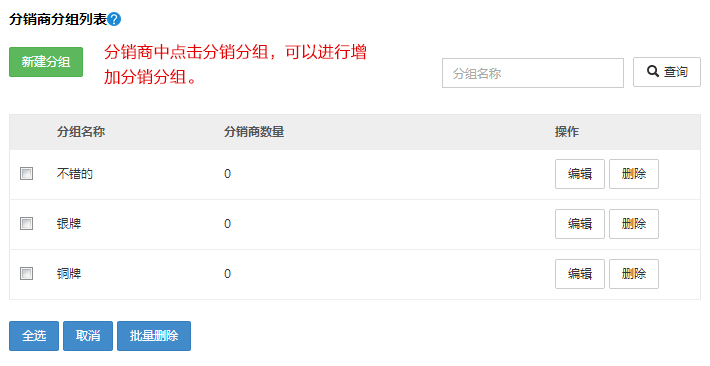 分销商分组:用户可将分销端按不同的需求进行分组